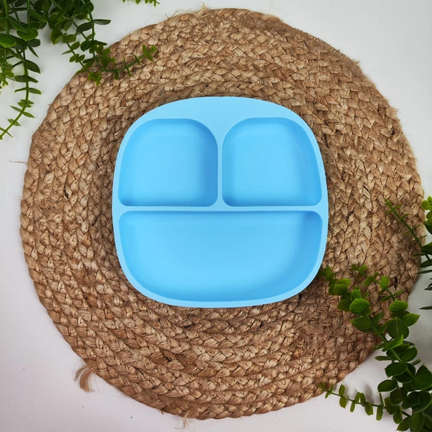 Тарілка дитяча силіконова секційна на присосці квадратна Блакитна