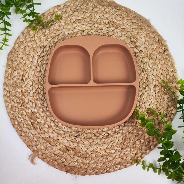 Тарілка дитяча силіконова секційна на присосці квадратна Коричневий