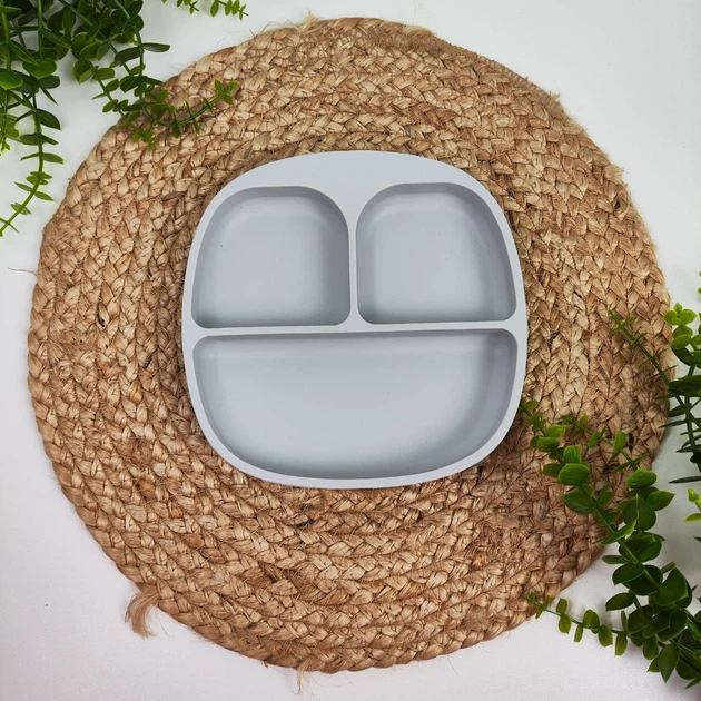 Тарілка дитяча силіконова секційна на присосці квадратна Світло-сіра