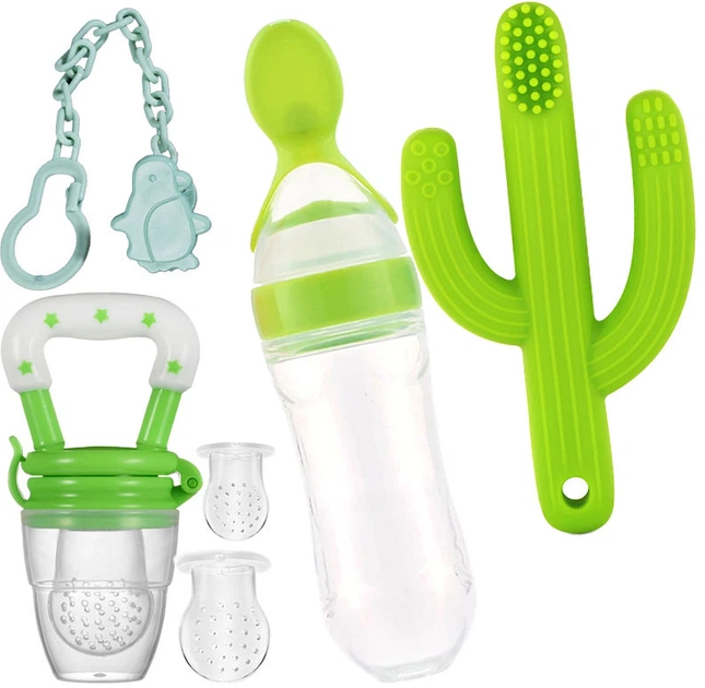 Набір 2Life Ніблер з насадками та ланцюжком фіксатором, Пляшка-ложка, Прорізувач Кактус Зелений (vol-10370)
