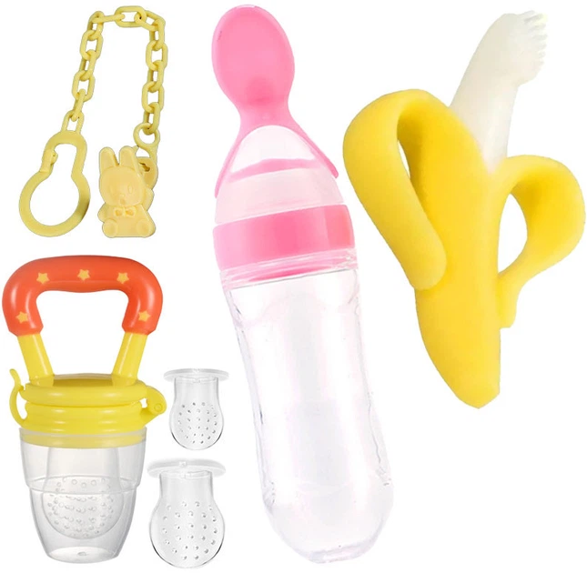 Набір 2Life Ніблер з насадками та ланцюжком, Вижимна Пляшка-ложка, Прорізувач Банан Жовтий (vol-10361)