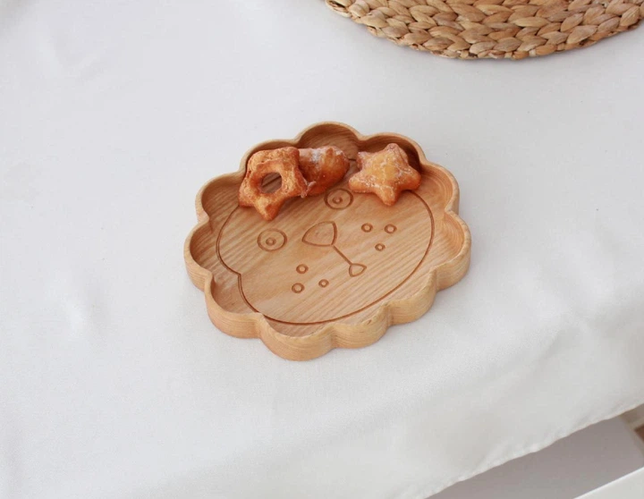 Тарілка із дерева для дітей Левеня з деревини ясена, дитячий екопосуд MDA 20х18х2,5 см (WDB-4.1)