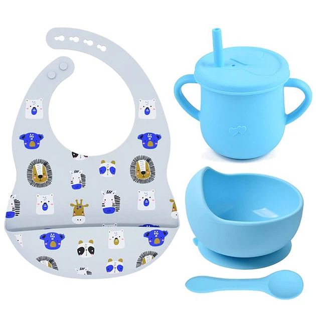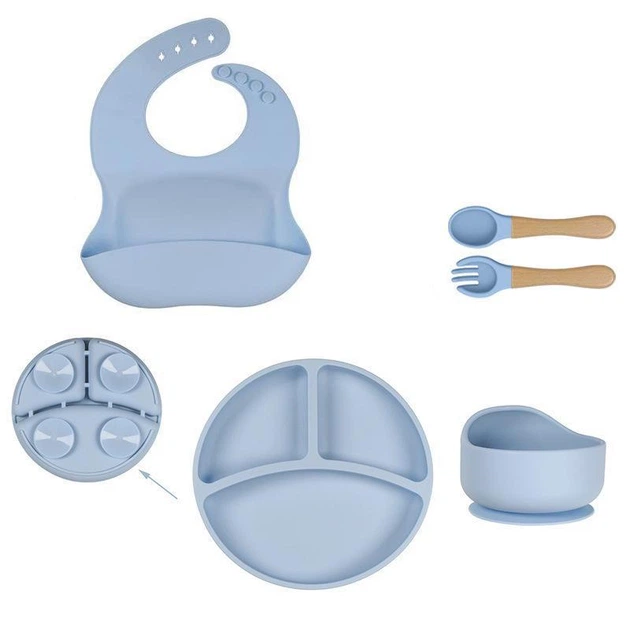 Набір дитячого силіконового посуду для годування дітей, на присосках, 5 предметів, синій