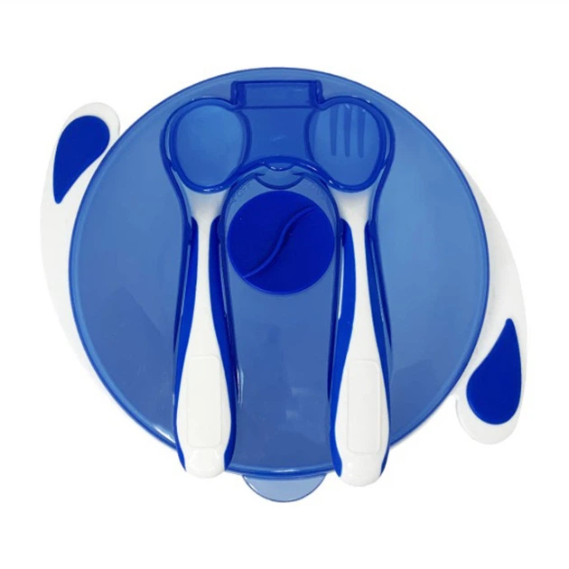 Тарілка на присосці з ложкою та вилкою (блакитна)(0109Блакитна)