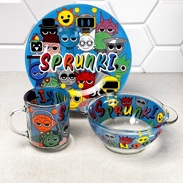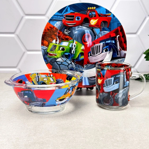 Подарунковий набір посуду дитячий скляний 3 пр Sprunki