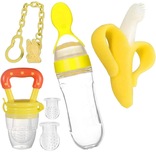 Набір 2Life Ніблер з насадками та ланцюжком, Вижимна Пляшка-ложка, Прорізувач Банан Жовтий (vol-10361)