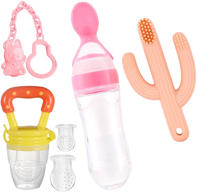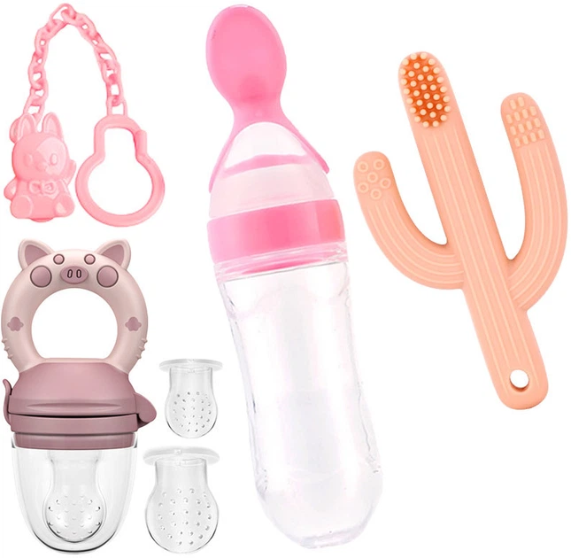 Набір 2Life Ніблер з насадками SML та ланцюжком Пляшка-ложка Прорізувач Кактус Рожеві (vol-10379)