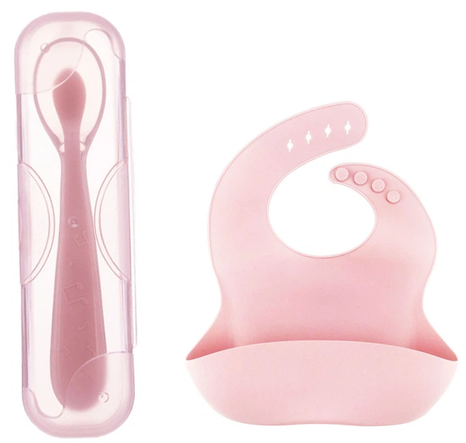 Набір Ложка силіконова з утриманням форми вигину для годування дитини Рожевий і ПОДАРУНОК (n-790)