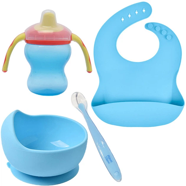Набір посуду 2Life глибока тарілка слинявчик Y9 ложка і поїльник-непроливайка Блакитний n-11862