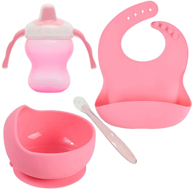 Набір посуду 2Life глибока тарілка слинявчик Y14 ложка і поїльник-непроливайка Рожевий v-11864