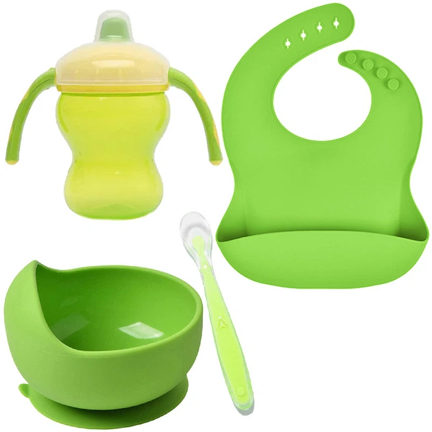 Набір посуду 2Life глибока тарілка слинявчик Y7 ложка і поїльник-непроливайка Зелений n-11863