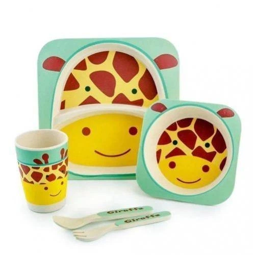 Набір дитячого бамбукового посуду Stenson MH-2770-1 Жираф 5а1