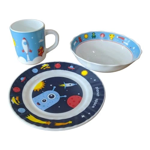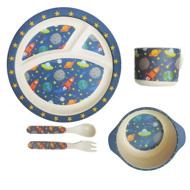 Посуд дитячий бамбук "Космос" 5пр/наб (2тарілки, вилка, ложка, чашка)