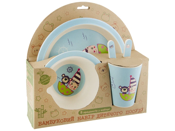 Посуд дитячий бамбук "Ведмедики" 5пр/наб (2тарілки, вилка, ложка, склянка)