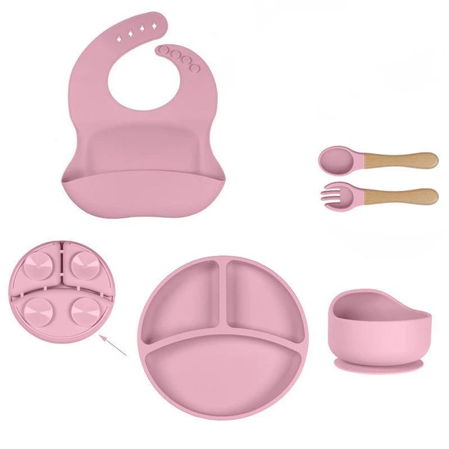 Набір дитячого силіконового посуду для годування дітей, на присосках, 5 предметів, рожевий
