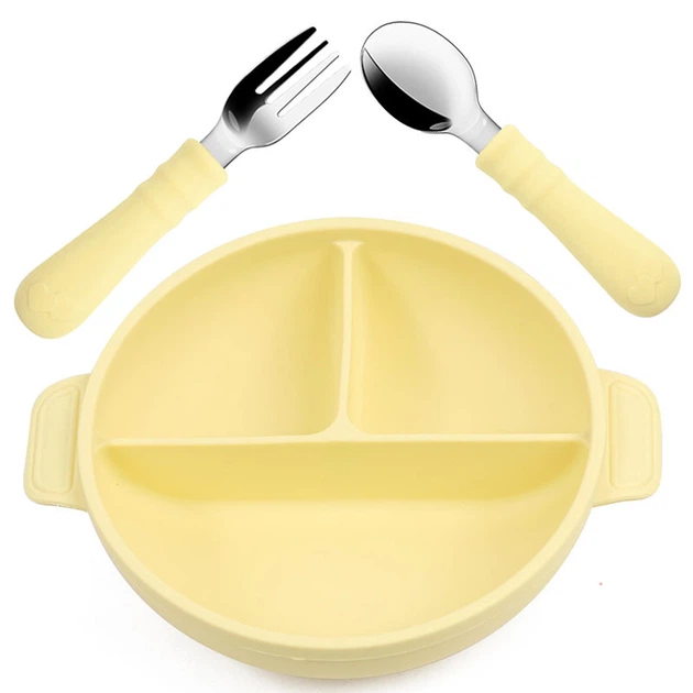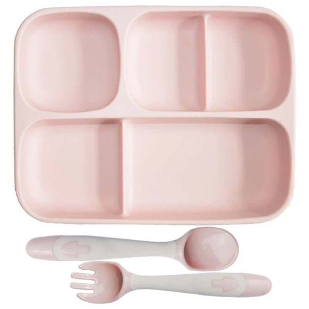 Набір силіконова трисекційна тарілка ложка 2Life Y4 2 шт Рожевий (vol-9994)