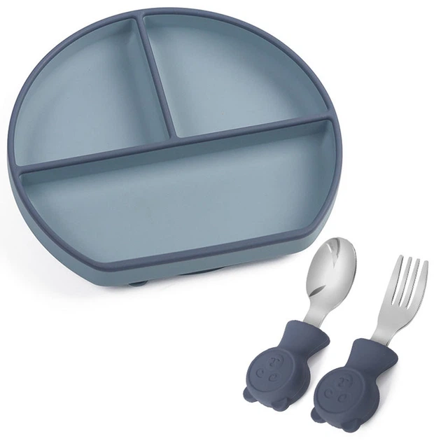 Силіконова трисекційна тарілка 2Life Y21 та металеві прилади Y10 Темно-блакитний з синім (v-11547)
