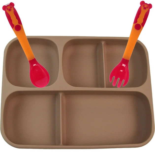 НабірY24силіконова секційна тарілка, слинявчик, ложка, пляшка-ложка Бежевий (vol-9934)