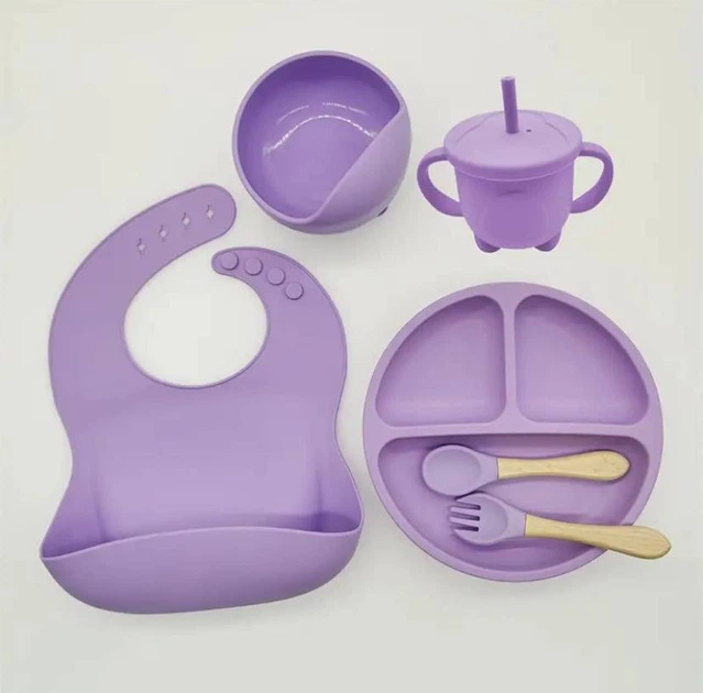Силіконовий дитячий набір, посуд для першого годування, Фіолетовий