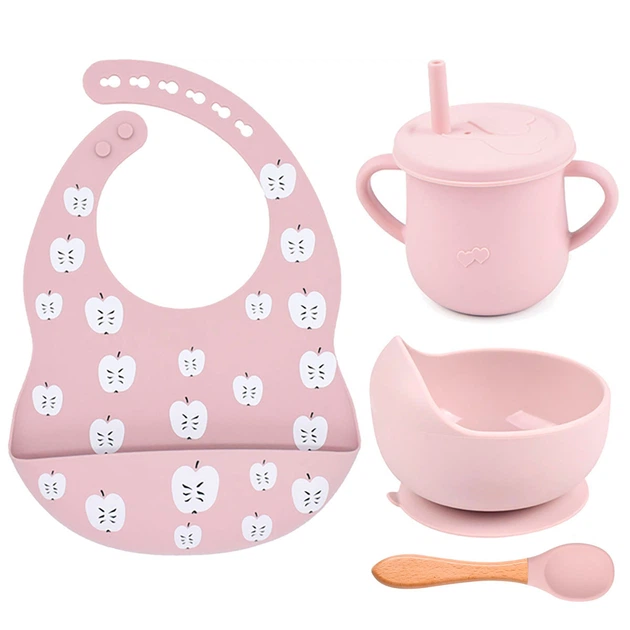 Силіконовий дитячий набір посуд для першого годування, Сердечко, Рожевий