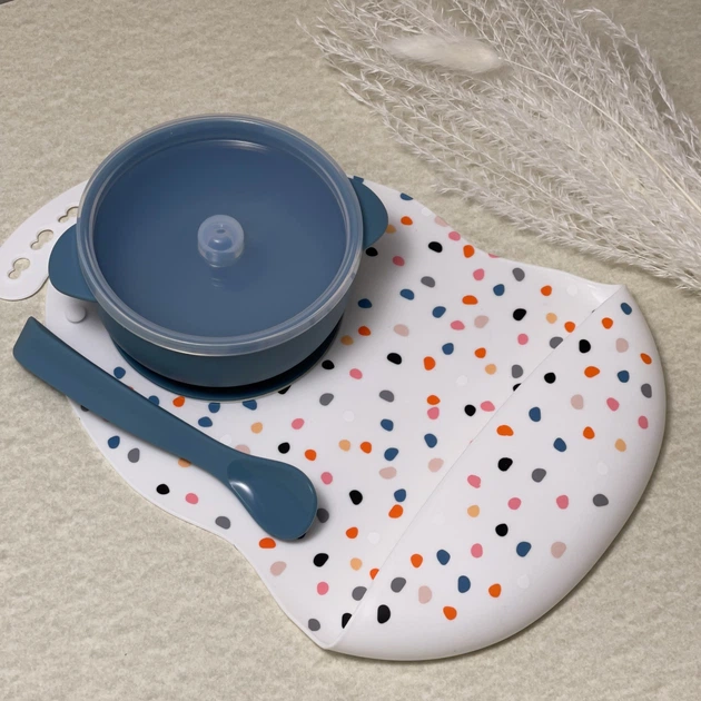 Набір посуду з харчового силікону для першого прикорму 4 шт. морська хвиля