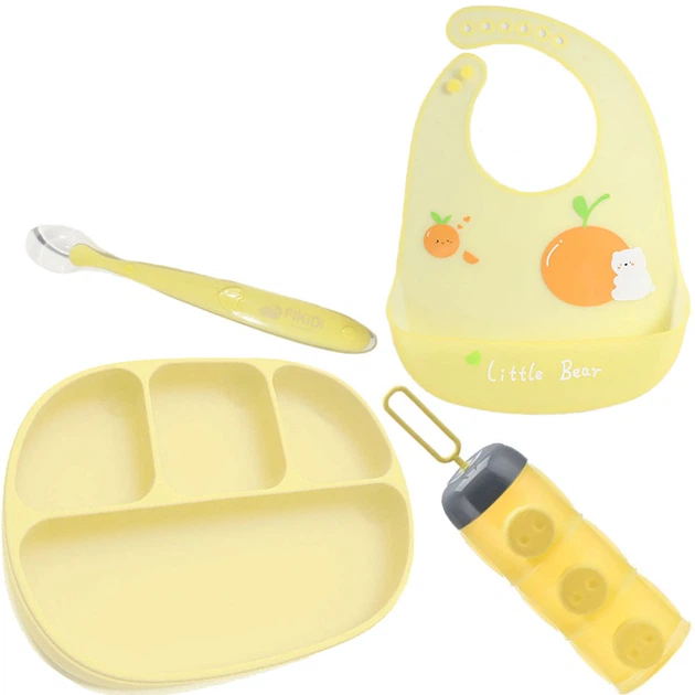 Набір посуду 2Life чотирьохсекційна тарілка D16 ложка слинявчик Жовтий контейнер для дитячих суміщів n-11869