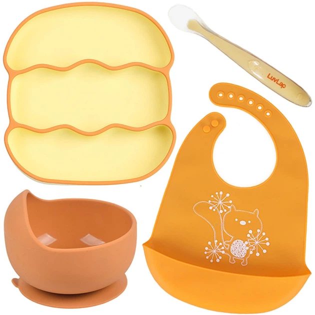 Набір силіконового посуду 2Life Y25 Хвиля трисекційна тарілка ложка та слинявчик з малюнком Помаранчевий n-12843