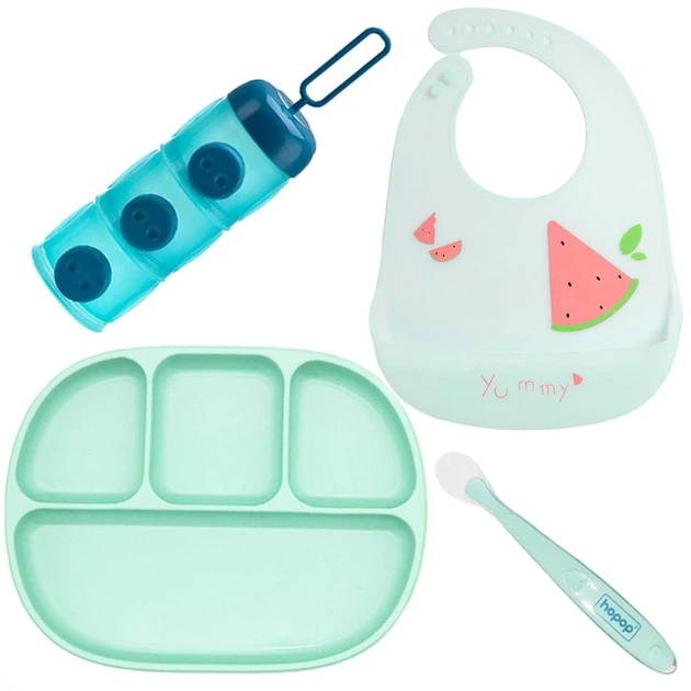 Набір посуду 2Life чотирьохсекційна тарілка D10 ложка слинявчик Зелений контейнер для дитячих суміщів n-11865