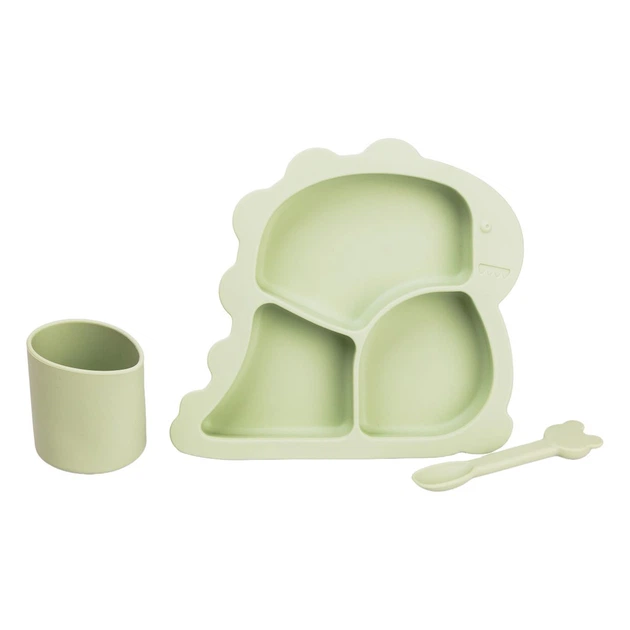 Дитячий набір силіконового посуду 3 предмети зелений (121-HP34545G)