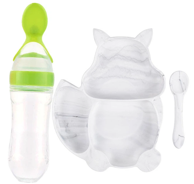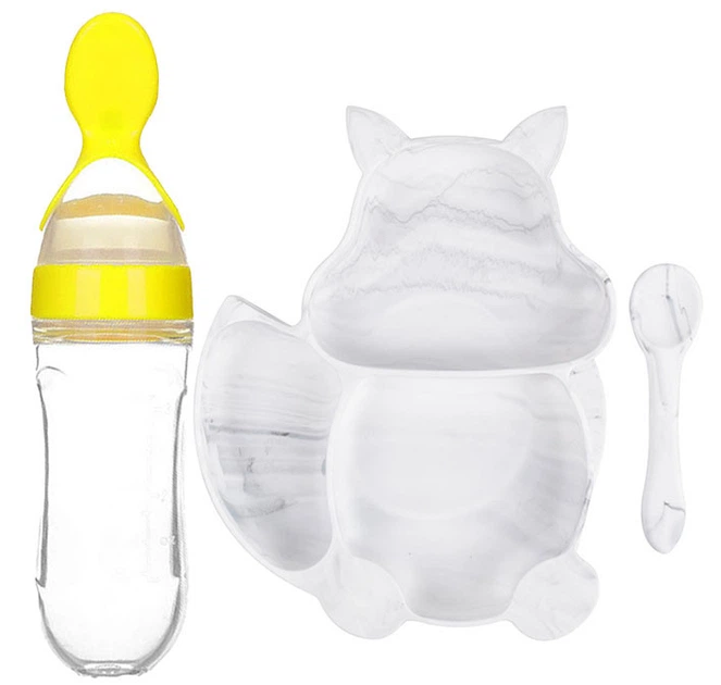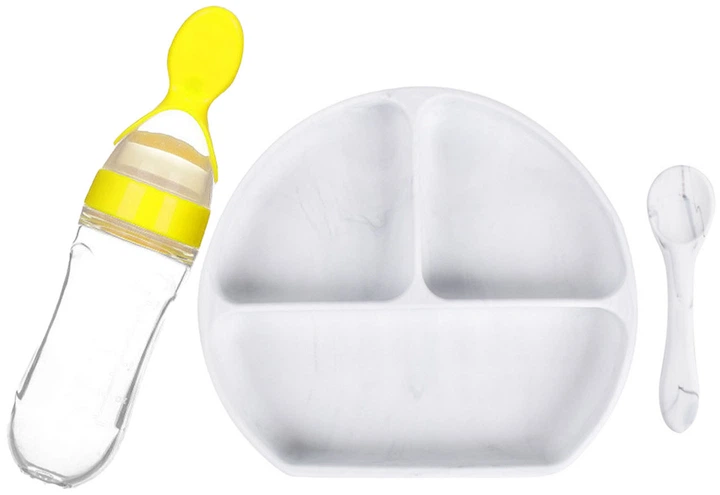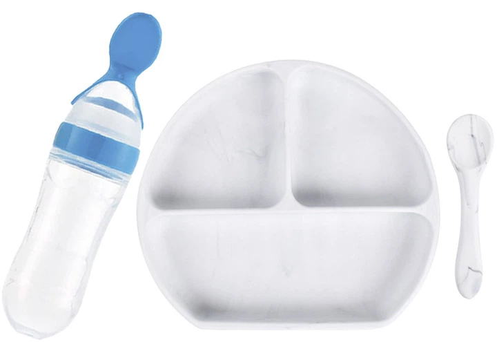 Набір силіконова напівкругла 3-х секційна тарілка ложка пляшка-ложка 2Life Y1 3 шт Білий (vol-10024)