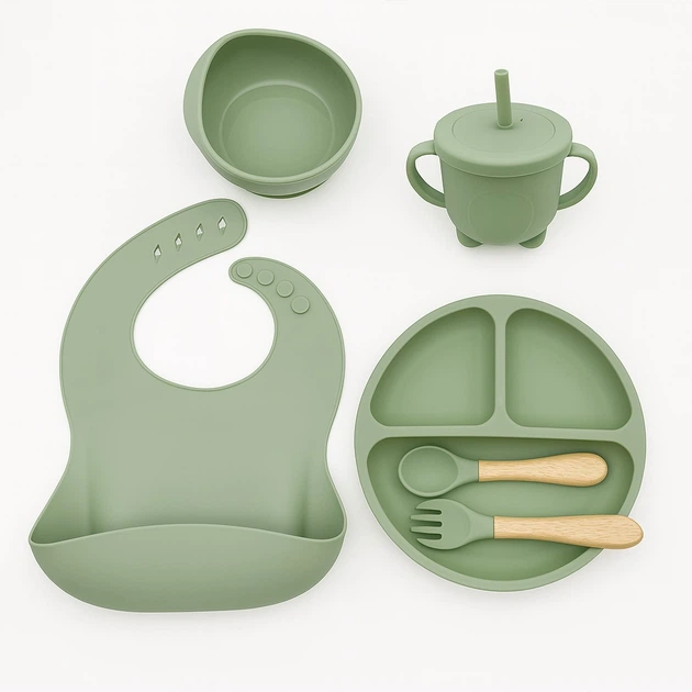 Набір дитячого посуду з 6 предметів силіконовий термостійкий зелений