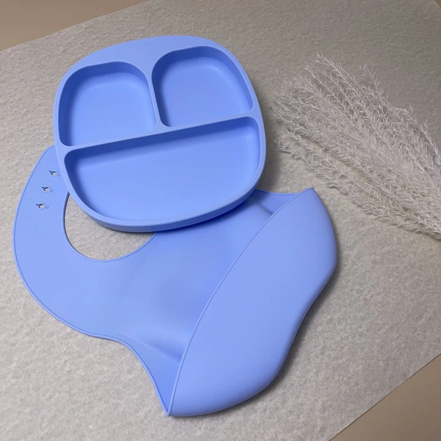 Секційна тарілка на присосці з нагрудником, 2 шт. Блакитний