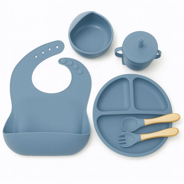 Набір дитячого посуду з 6 предметів силіконовий термостійкий синій
