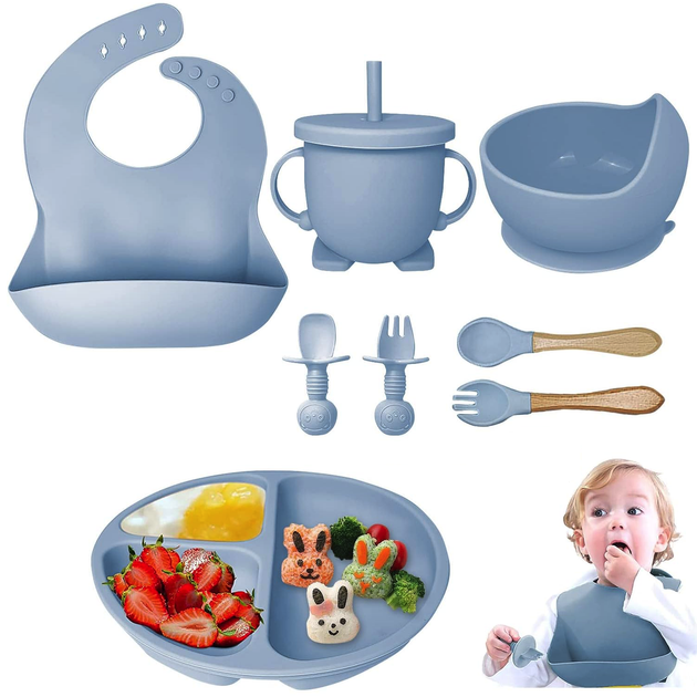 Силіконовий набір для годування дітей OEM 9 предметів, синього кольору