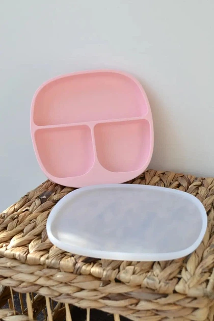 Тарілка силіконова секційна на присосці з кришкою, Rose Quartz