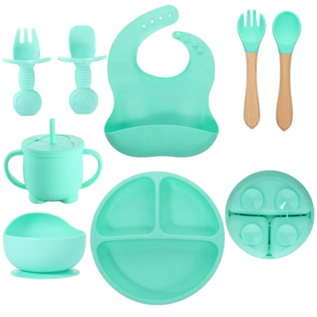 Силіконовий набір для годування дітей OEM 9 предметів, зеленого кольору