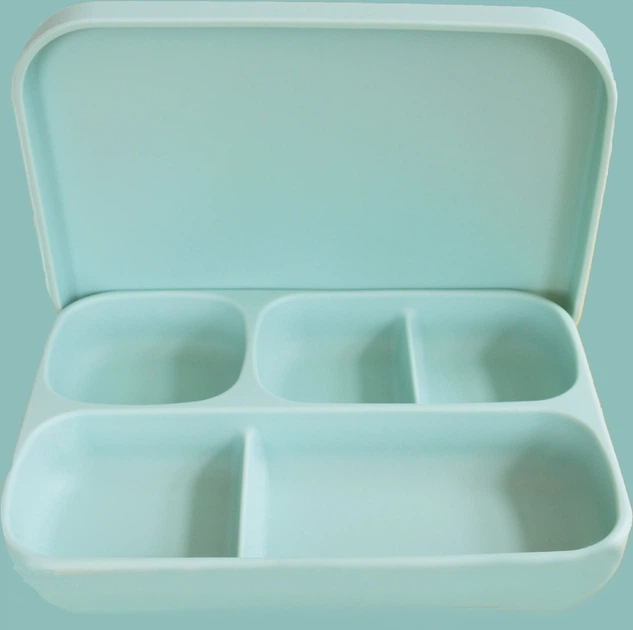 Дитяча п'ятисекційна силіконова тарілка з присоскою з кришкою М'ятний (vol-10198)