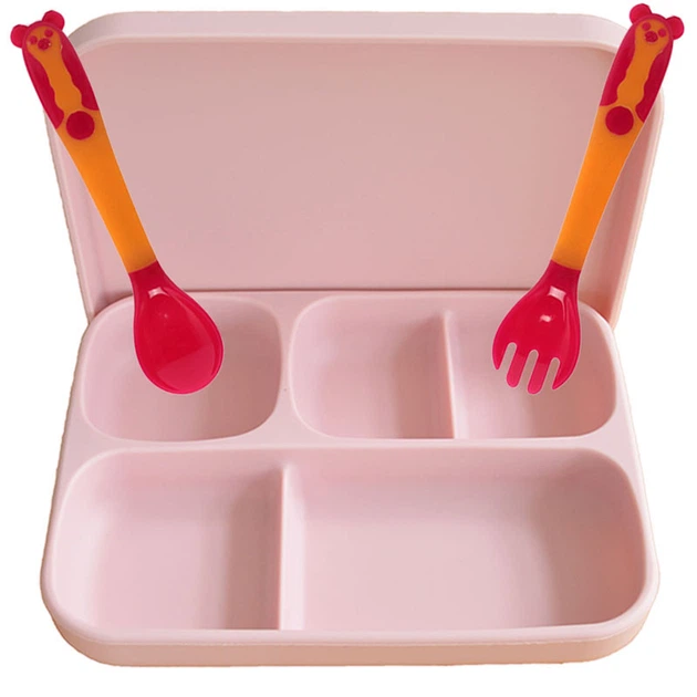Силіконова п'яти-секційна тарілка А1 з кришкою і ложка виделка змінююча форму