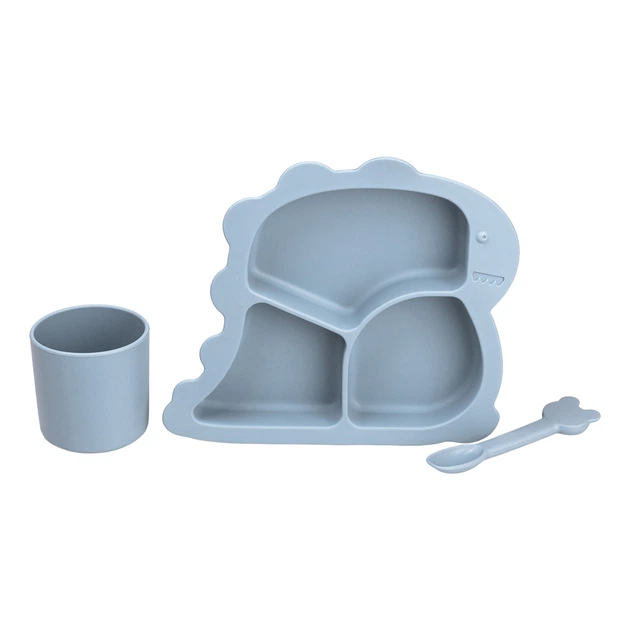 Дитячий набір силіконового посуду з чашкою та тарілкою 3 секції для малюка безпечний посуд із ложкою Синій (524889)
