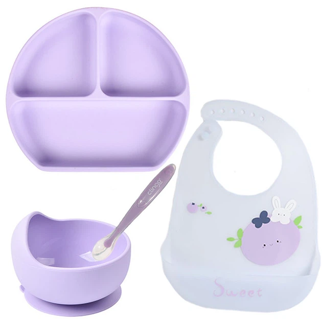 Набір дитячого посуду з приладами 2Life Y2 та слинявчик Фіолетовий v-12057