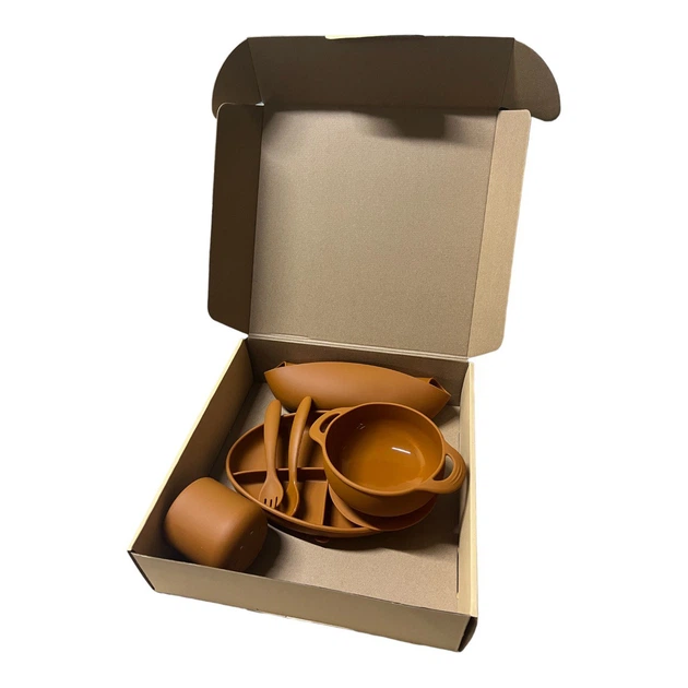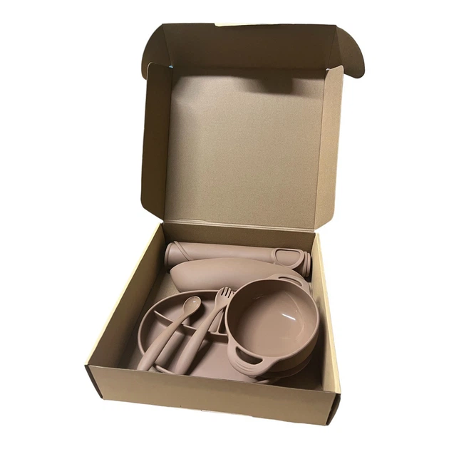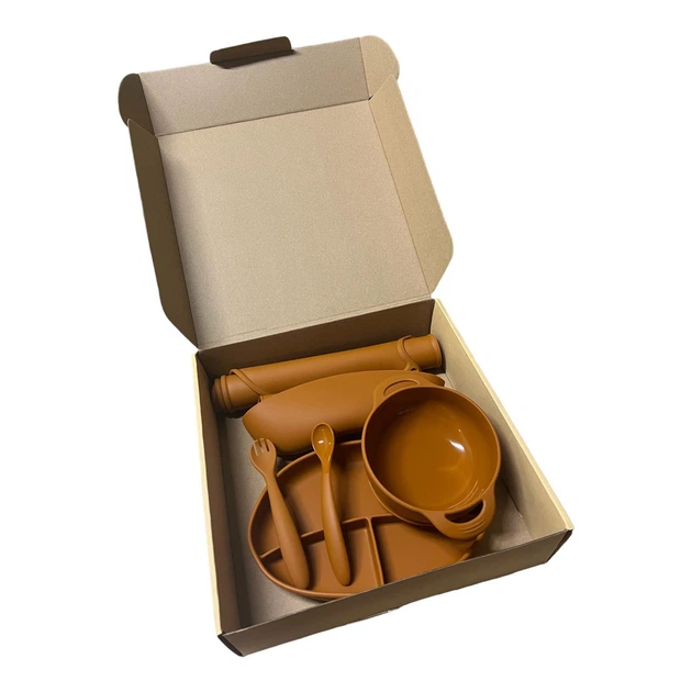 Набір силіконового посуду для першого прикорму дітей на присосці, 6 предметів, brown