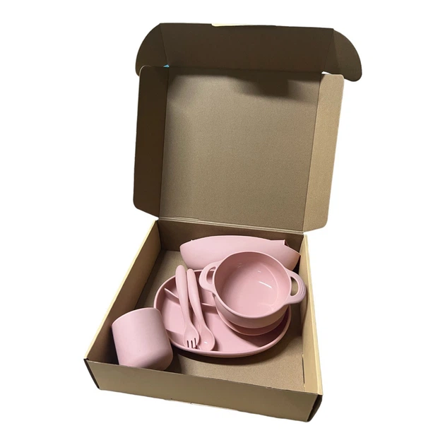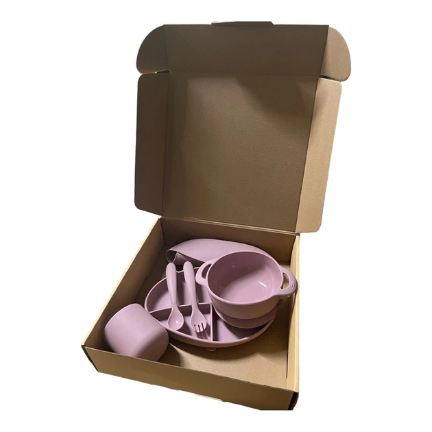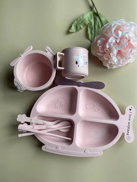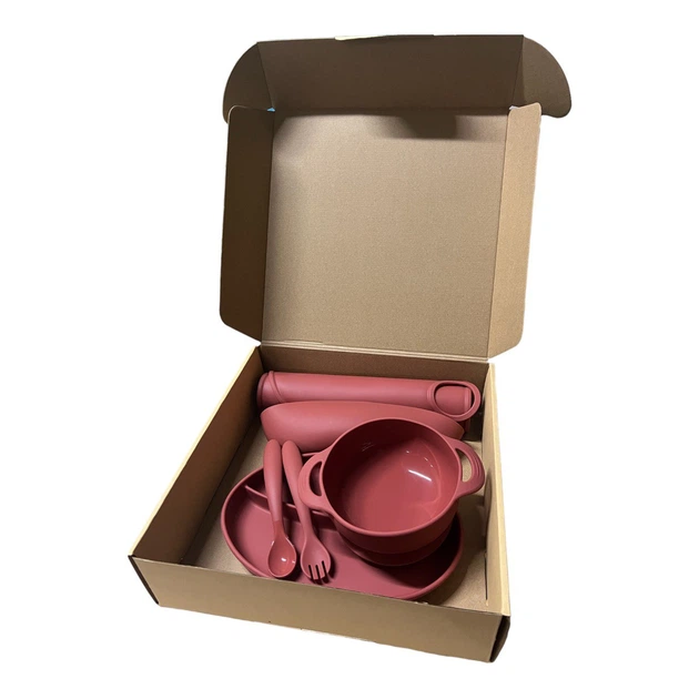 Набір силіконового посуду для першого прикорму дітей, 6 предметів, Pink