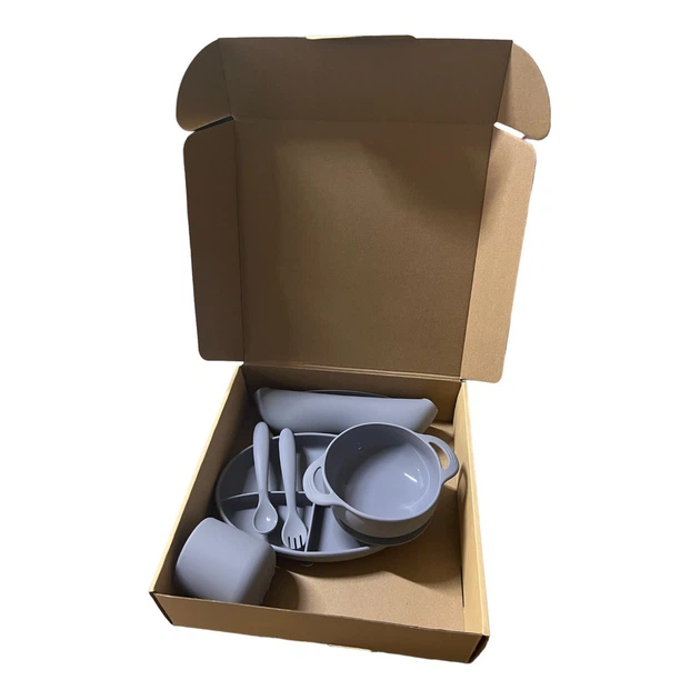 Набір силіконового посуду для першого прикорму дітей, 6 предметів, Grey