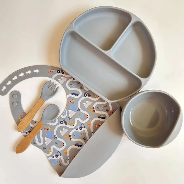 Силіконовий посуд для дітей RNPR imge6185 кругла прилади дерево Newsun
