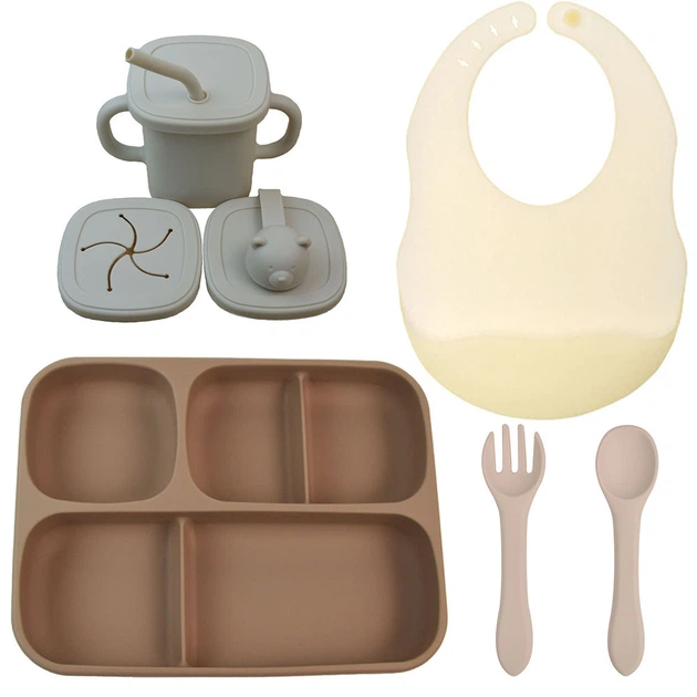 Набір посуду 2Life п'яти-секційна тарілка А5 ложка виделка Y15 поїльник і слюнявчик Бежевий