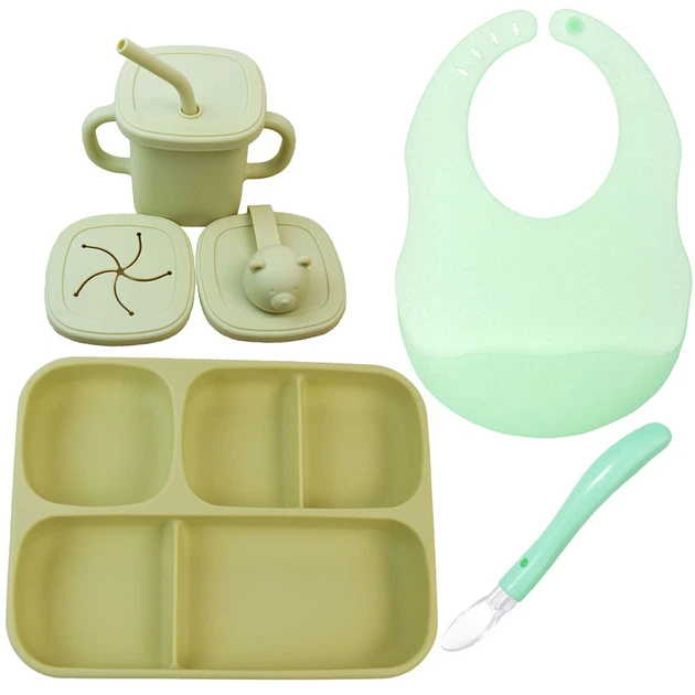 Набір посуду 2Life п'яти-секційна тарілка А1, ложка, поїльник і слюнявчик Зелений