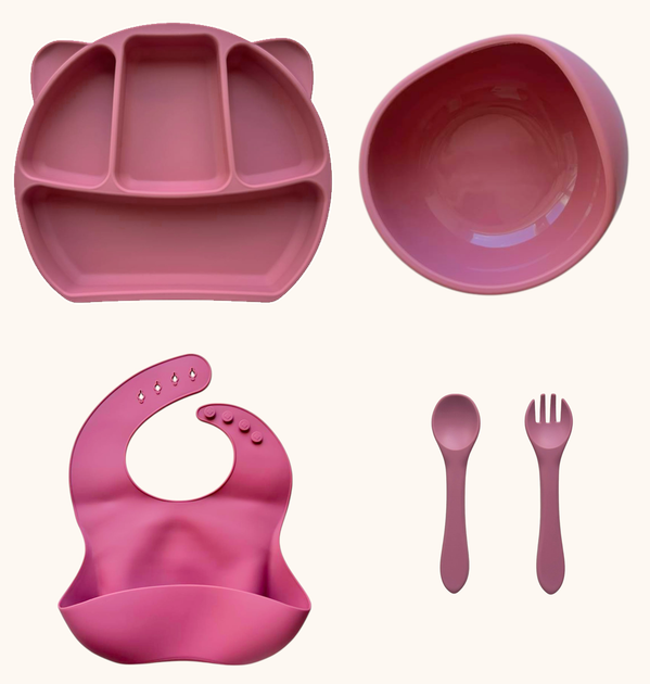 Набір дитячого силіконового посуду "Стартовий з вушками. Боул" Димна троянда (2767041744)