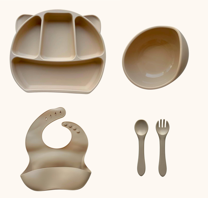 Набір дитячого силіконового посуду "Стартовий з вушками. Боул" Бежевий (2767041739)