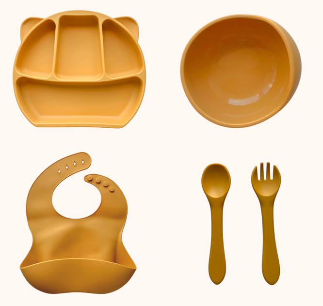 Набір дитячого силіконового посуду "Стартовий з вушками. Боул" Гірчиця (2767041745)
