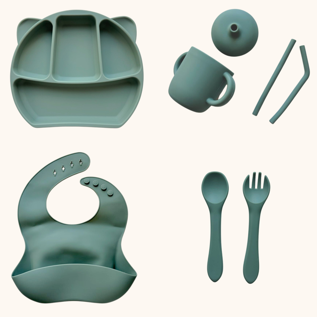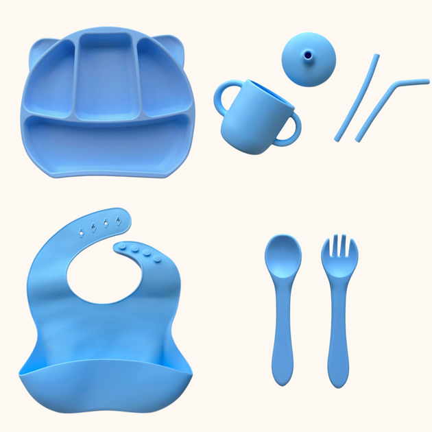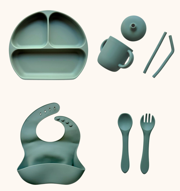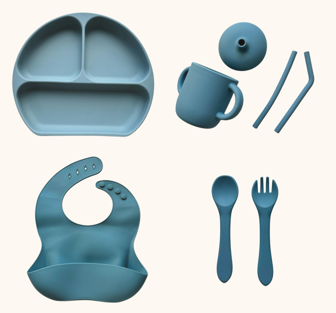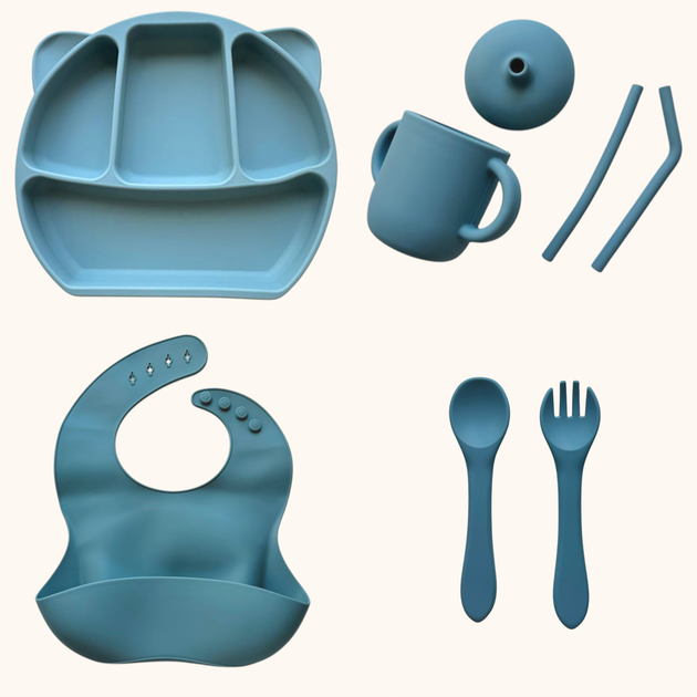 Набір дитячого силіконового посуду "Стартовий" Димний блакитний (2767041778)